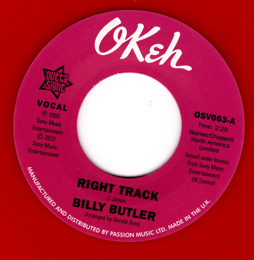 Billy Butler – Right Track / (Instrumental) 45 (Outta Sight) RED 7″ Vinyl
