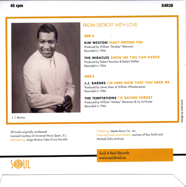| B SIDE | JJ Barnes – I’m Here Now That You Need Me / The Temptations – I’d Rather Forget |