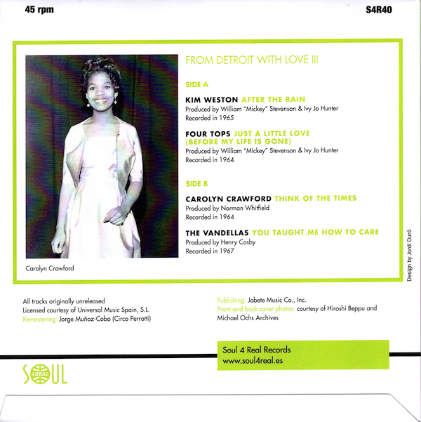 | B Side | Carolyn Crawford – Think Of The Times / The Vandellas – You Taught Me How To Care |