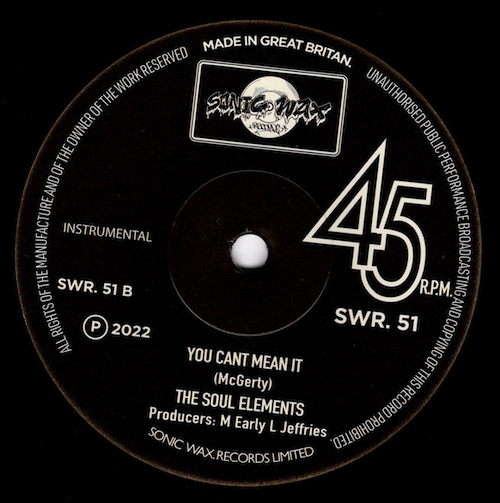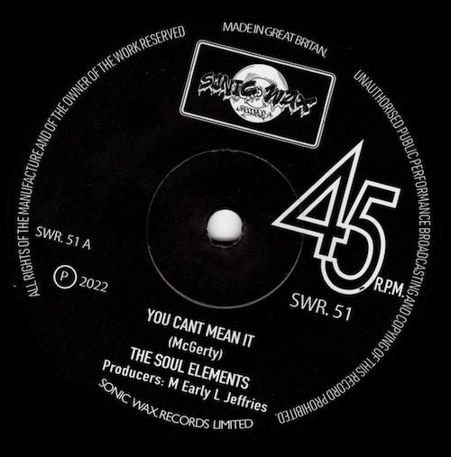 Soul Elements – You Can’t Mean It / (Instrumental) 45 (Sonic Wax) 7″ Vinyl