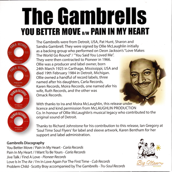 Gambrells – You Better Move / Pain In My Heart 45 (Big Man) 7″ Vinyl
