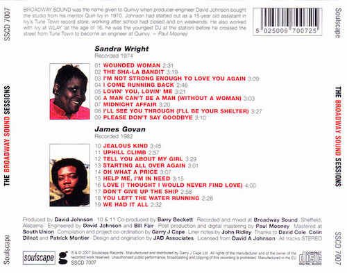 Broadway Sound Sessions – Sandra Wright & James Govan CD (Soulscape)