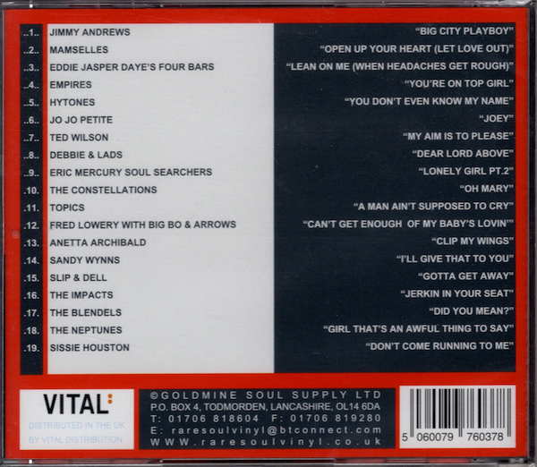 Rare deleted Goldmine Soul Supply CD featuring The Constellations, Blendels, Topics, Hytones, Jimmy Andrews, Eric Mercury & more