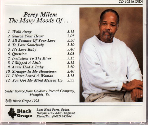 And what of Percy Miley today? His lengthy absence from the recording studio from his 60’s Goldwax days to the present is explained by the fast the he was convalescing and recovering from a serious automobile accident which, even today, leaves him with the legacy of a stick to aid his walking.