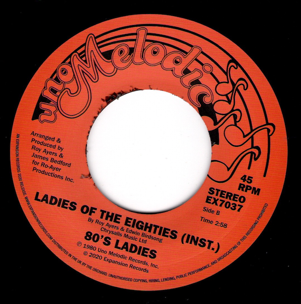 This 7” is an exclusive edit of the 12” version, while the instrumental version of “Ladies of The Eighties” appears here on 7” for the first time.