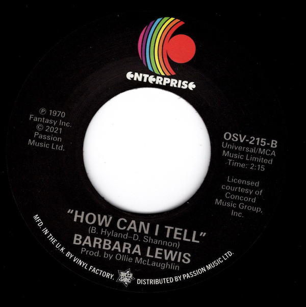 | B Side | Barbara Lewis – How Can I Tell |