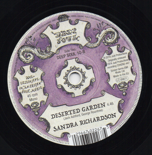 Our Deep Soul series already sports Eddie Parker’s acclaimed ‘But If You Must Go’ and now we have his supremely soulful version of ‘Crying Clown’ taken from the same sessions. Already a great ballad cut by him in the 60s, this sparser piano-led take is as intense as soul music gets. It is backed with the beautiful melancholy of Detroit great Sandra Richardson’s ‘Deserted Garden’, previously only available on our first “Jack Ashford – Just Productions” CD. – Ace Records