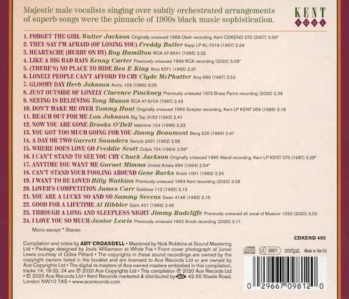 We have included some tracks which debuted on other Kent CDs that deserve reappraisal in an appropriate setting. Walter Jackson’s amazingly good ‘Forget The Girl’ and Tommy Hunt’s male take on ‘Don’t Make Me Over’ are particularly noteworthy examples. As with Chuck Jackson’s ‘I Can’t Stand To See You Cry’, it is bewildering how such great tracks can have been unreleased at the time of recording. There are classics of the style from Freddie Scott and Garnet Mimms, while left-field contributions from Al Hibbler and Sammy Sevens make this a must-buy soul CD.- Ace Records