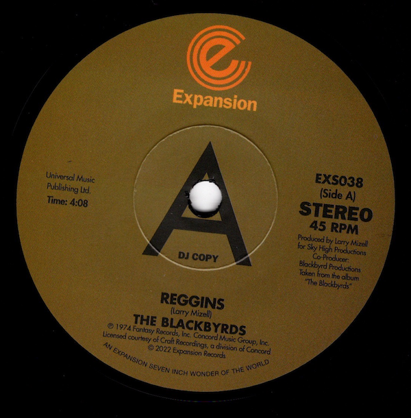 This is the first 7” issue of “Reggins”, an instrumental jazz funk masterpiece written and produced by the legendary Larry Mizell, producer of artists including Donald Byrd, Bobbi Humphrey and Johnny Hammond during their 70s heyday. The equally desirable “Blackbyrds’ Thme” on a 7” is produced by Donald Byrd. – Expansion